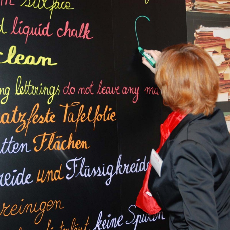 | Description | Ce film adhésif ardoisine noir en PVC bi-couche, polymère, avec peinture spéciale, permet de transformer chaque support rigide et lisse en un tableau inscriptible aussi bien à la craie traditionnelle qu'avec des feutres à craie liquide. Sa surface mate est effaçable à l'éponge humide et résiste aux rayures et solvants. Il est utilisable en intérieur et extérieur et offre une durabilité de 5 ans. Ce film adhésif convient ainsi parfaitement à une utilisation fréquente dans la restauration, la PLV, les salles de conférences et de formation, les bureaux ou les espaces privés. Il peut être découpé pour prendre toutes les formes et dimensions imaginables. Il est également possible de le personnaliser à l'aide d'encres à séchage UV ou d'encres de sérigraphie. |